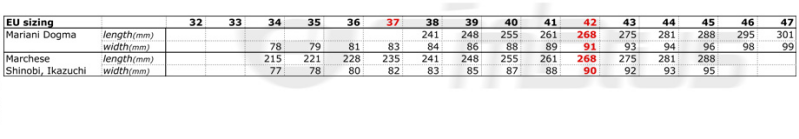 Marchese Sizing Chart
